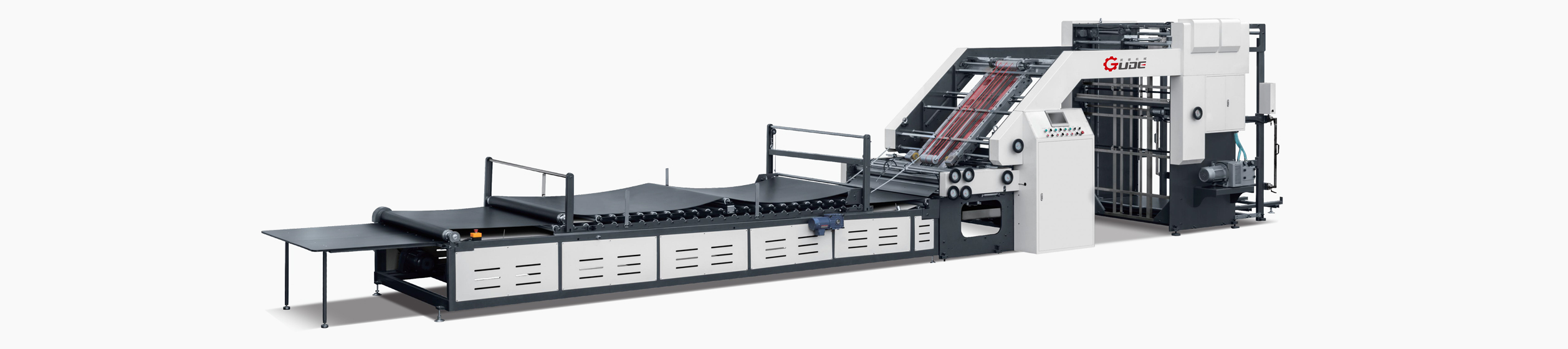 The four groups of pressure of paper feeding, gluing, lamination and compounding can be adjusted individually by unilateral micro-motion, or the four groups of pressure can be adjusted up and down as a whole.